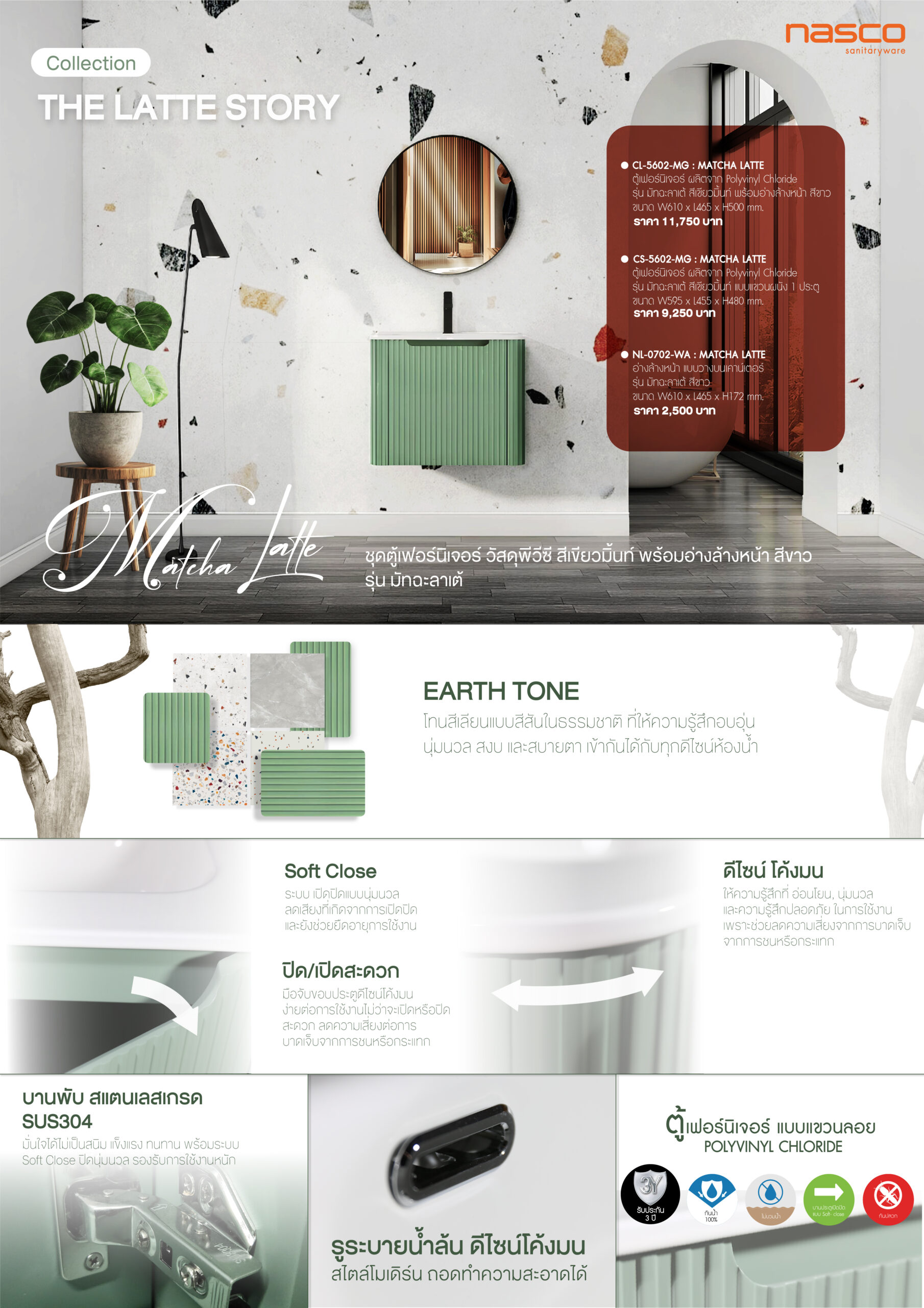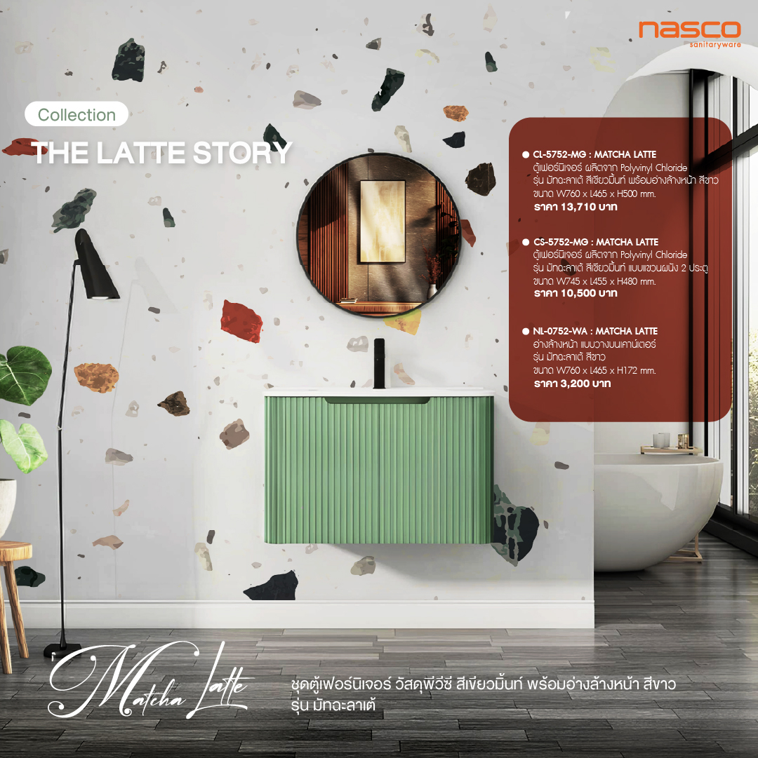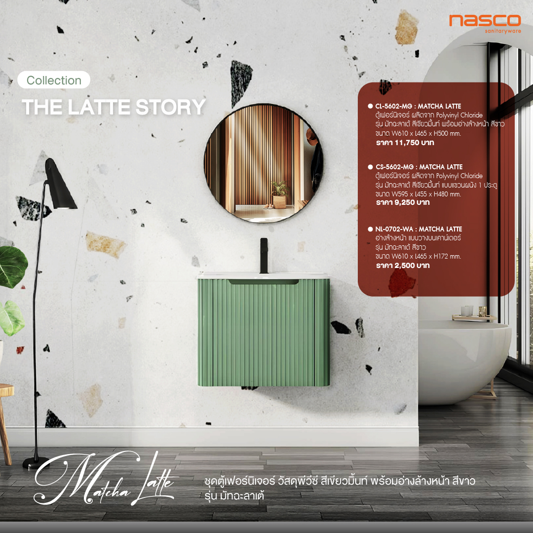 ตู้เฟอร์แบบแขวนลอยพร้อมอ่างล้างหน้า รุ่น มัทฉะลาเต้
